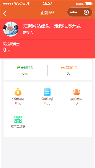 功能:分销百分比返佣,海报,积分,以及汇到家的基本功能